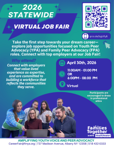 Families Together in New York State is hosting the 2026 Statewide Virtual Job Fair, bringing together organizations and Participants from across the state for a convenient and accessible hiring event.
