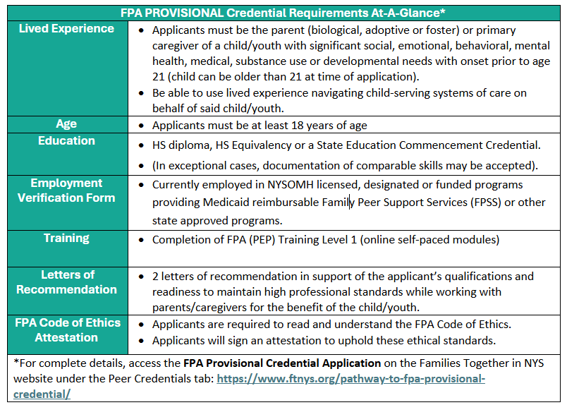 FAMILY PEER ADVOCATE pROVISIONAL CREDENTIAL (fpa-p)